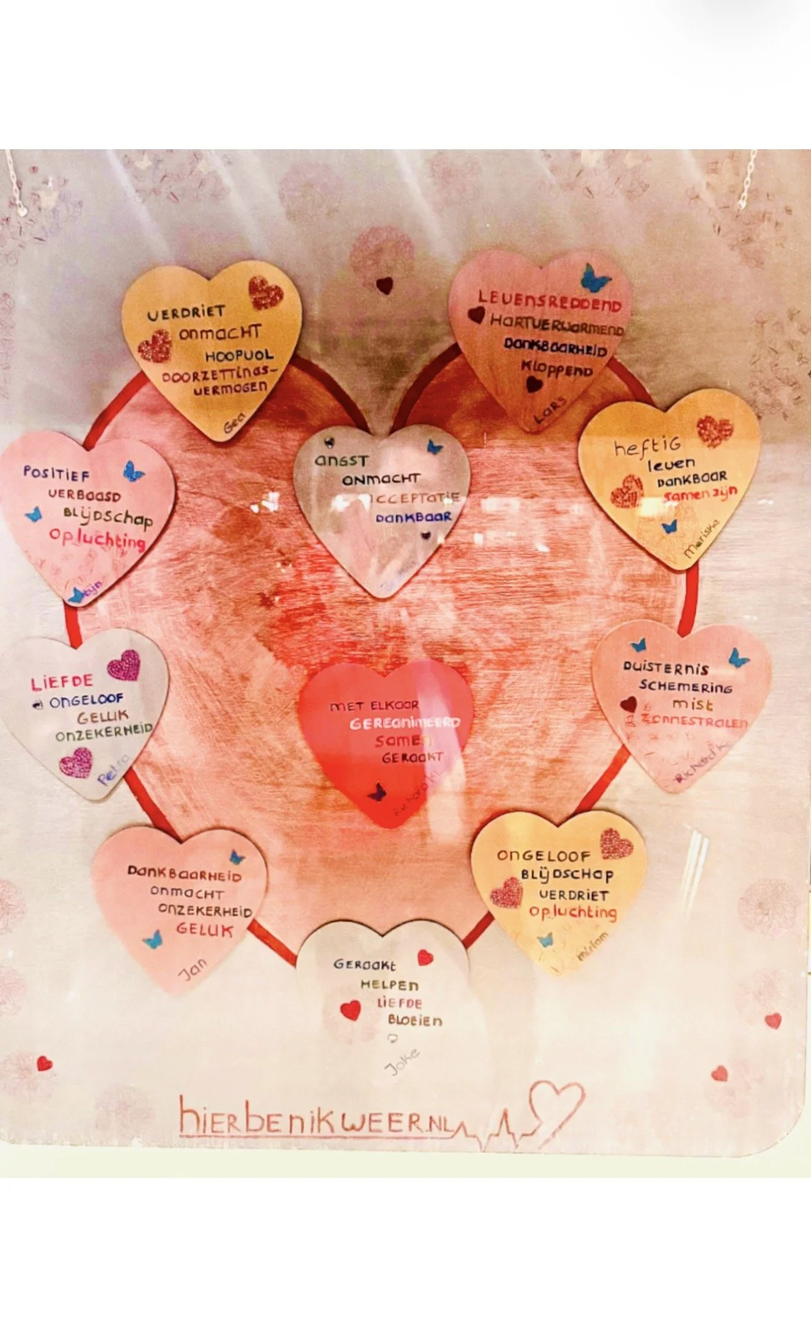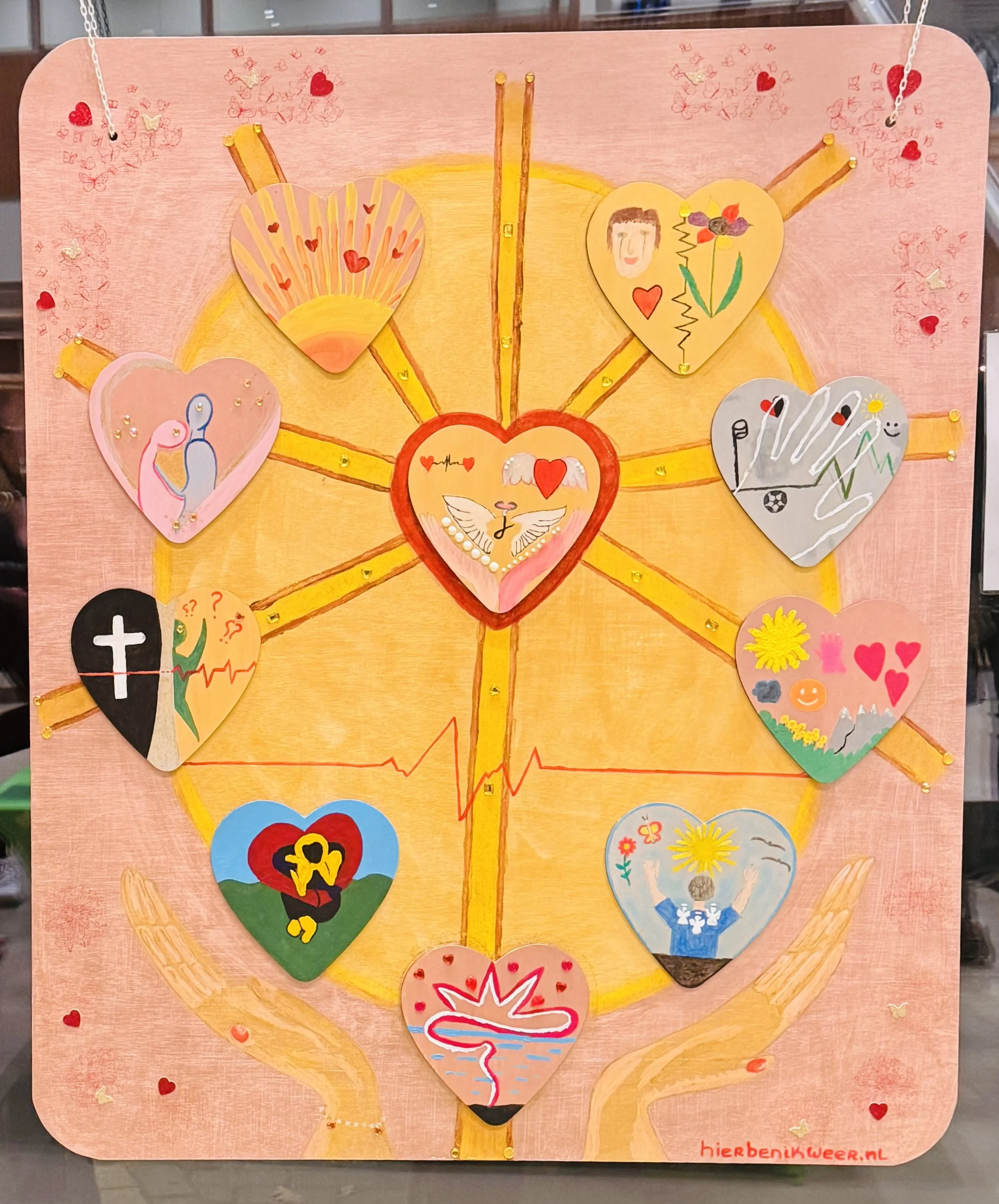 Het gezamenlijke kunstwerk gemaakt door mensen die gereanimeerd zijn